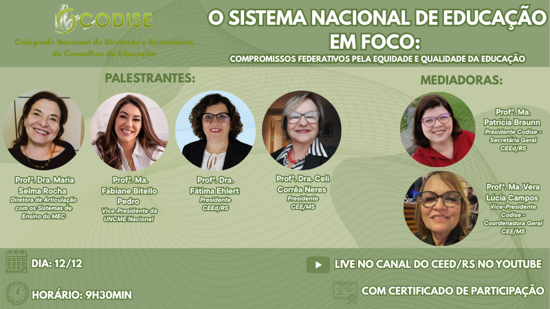 12/12 – LIVE CODISE: O Sistema Nacional de Educação em foco